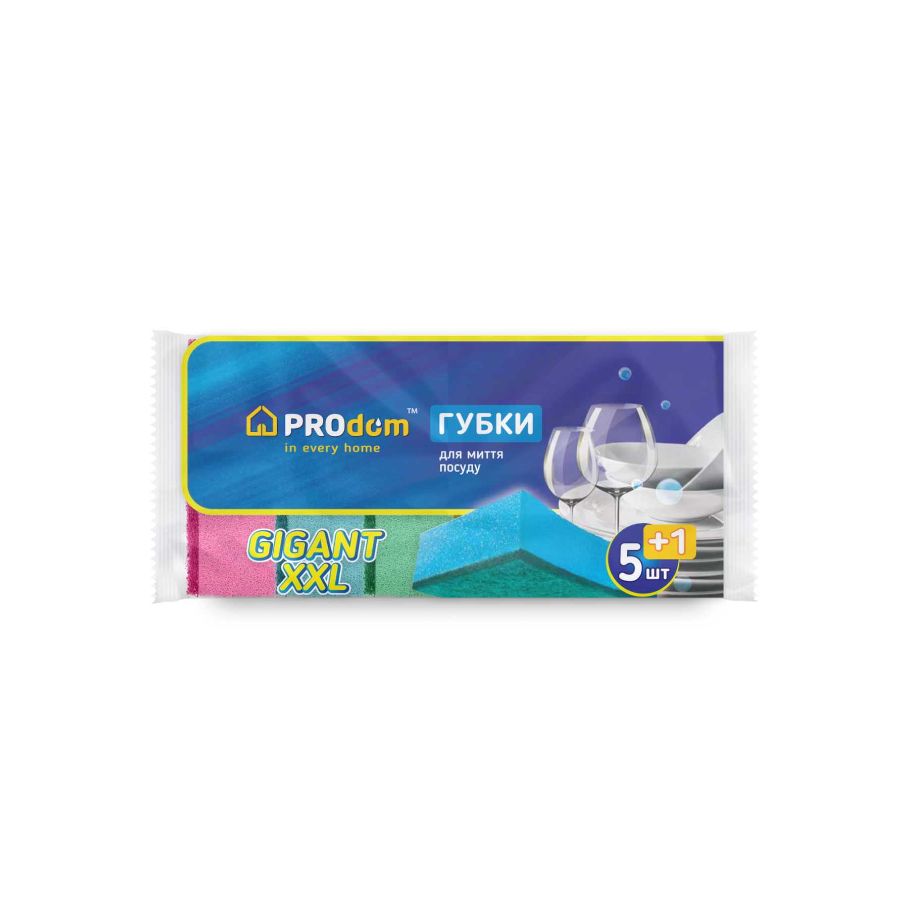 Губка кухонна 5+1 шт" Гігант XXL " PRODOM — якісний господарчий товар, який ідеально підходить для щоденного використання вдома, в офісі або на підприємстві. Компанія PRODOM спеціалізується на виробництві, імпорті та оптових поставках господарчих товарів по всій Україні та за кордон.