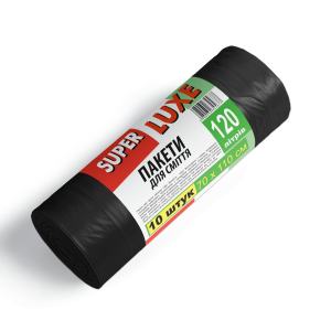 Пакети для сміття 120*10 ТМ Super Luxe — якісний господарчий товар, який ідеально підходить для щоденного використання вдома, в офісі або на підприємстві. Компанія PRODOM спеціалізується на виробництві, імпорті та оптових поставках господарчих товарів по всій Україні та за кордон.