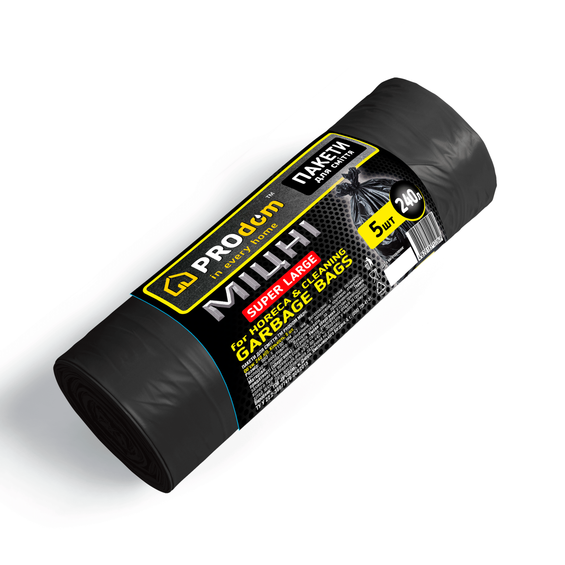 Пакети для сміття 240*5 МІЦНІ ТМ PROdom — якісний господарчий товар, який ідеально підходить для щоденного використання вдома, в офісі або на підприємстві. Компанія PRODOM спеціалізується на виробництві, імпорті та оптових поставках господарчих товарів по всій Україні та за кордон.